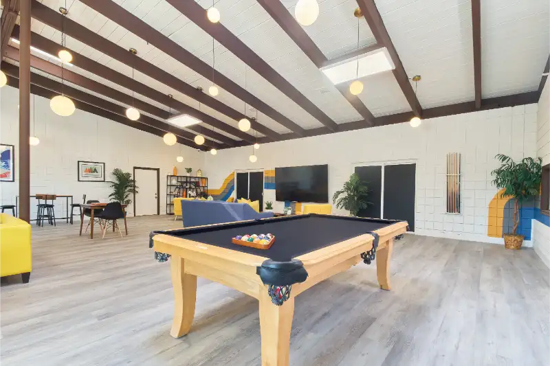 Our clubhouse is the heart of the community. Inside you’ll find billiards, ping pong, chess, and board games. Whether you’re feeling social or just want to escape the sun for a bit, this is your go-to hangout.