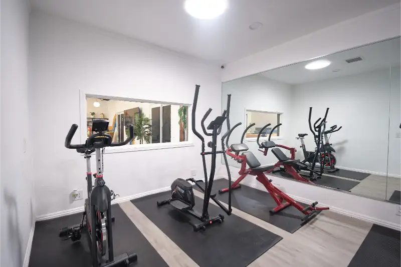 Stay active and energized in our fitness area, with cardio equipment, weights, and stretching space to support your wellness routine.